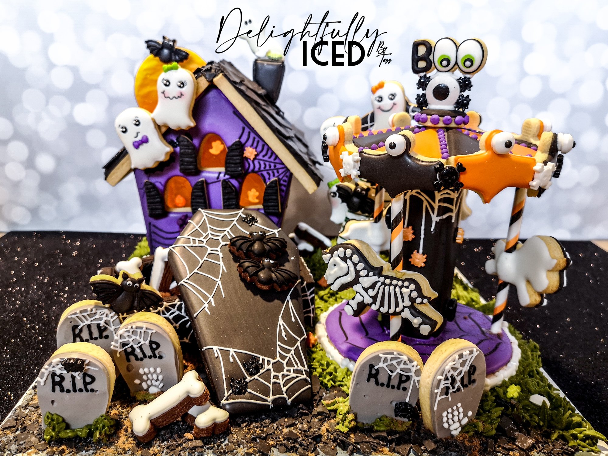 🎃👻🦇 The creepy cookie carnival has come to town! 🎡🎠 This bootiful and goulishious 30x30cm scene is all the edible Halloweeny cookie deliciousness you could want 🏚️